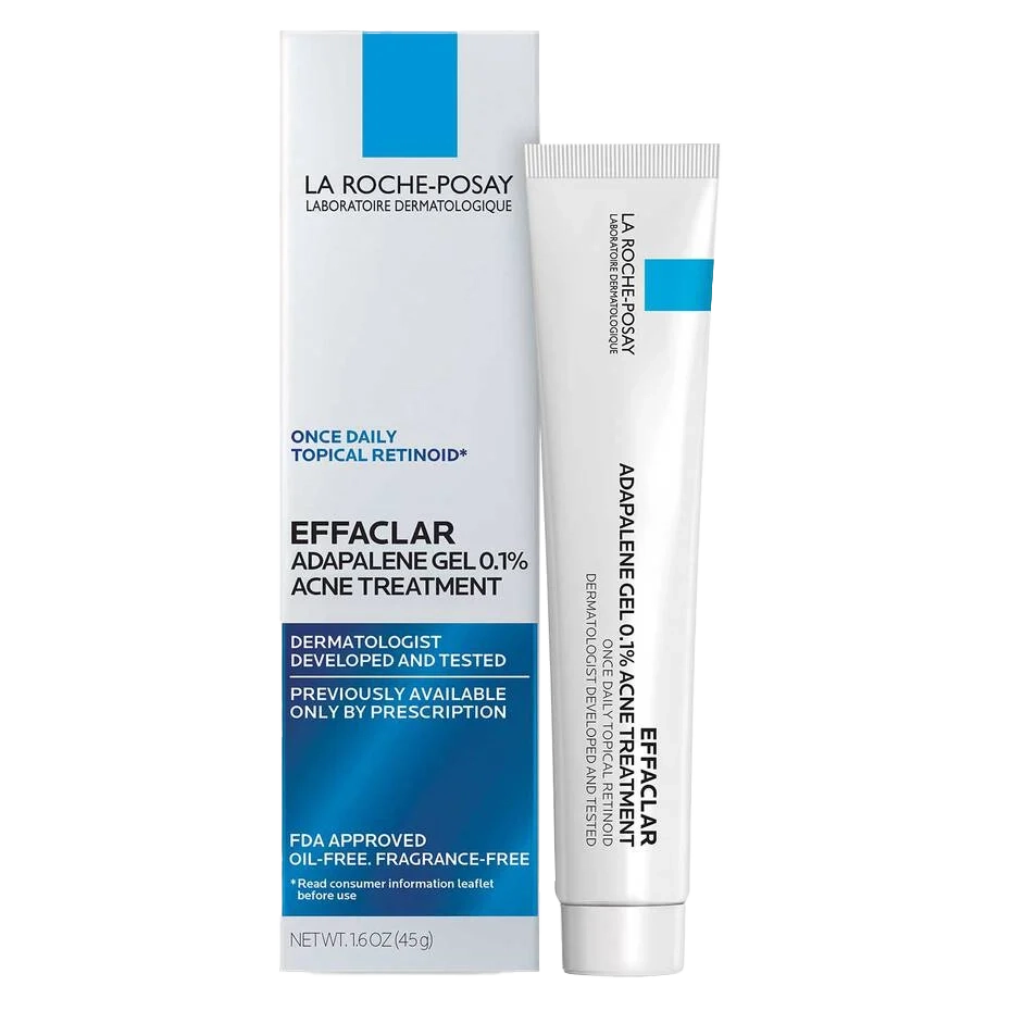 - Adapalene Gel 0.1% (Topical Retinoid): A topical retinoid medication used in Effaclar Adapalene for the treatment of acne. A synthetic molecule that mimics vitamin A, it works by regulating skin cell turnover to help remove and prevent dead skin from clogging pores. An ideal choice for those concerned with whiteheads and blackheads.