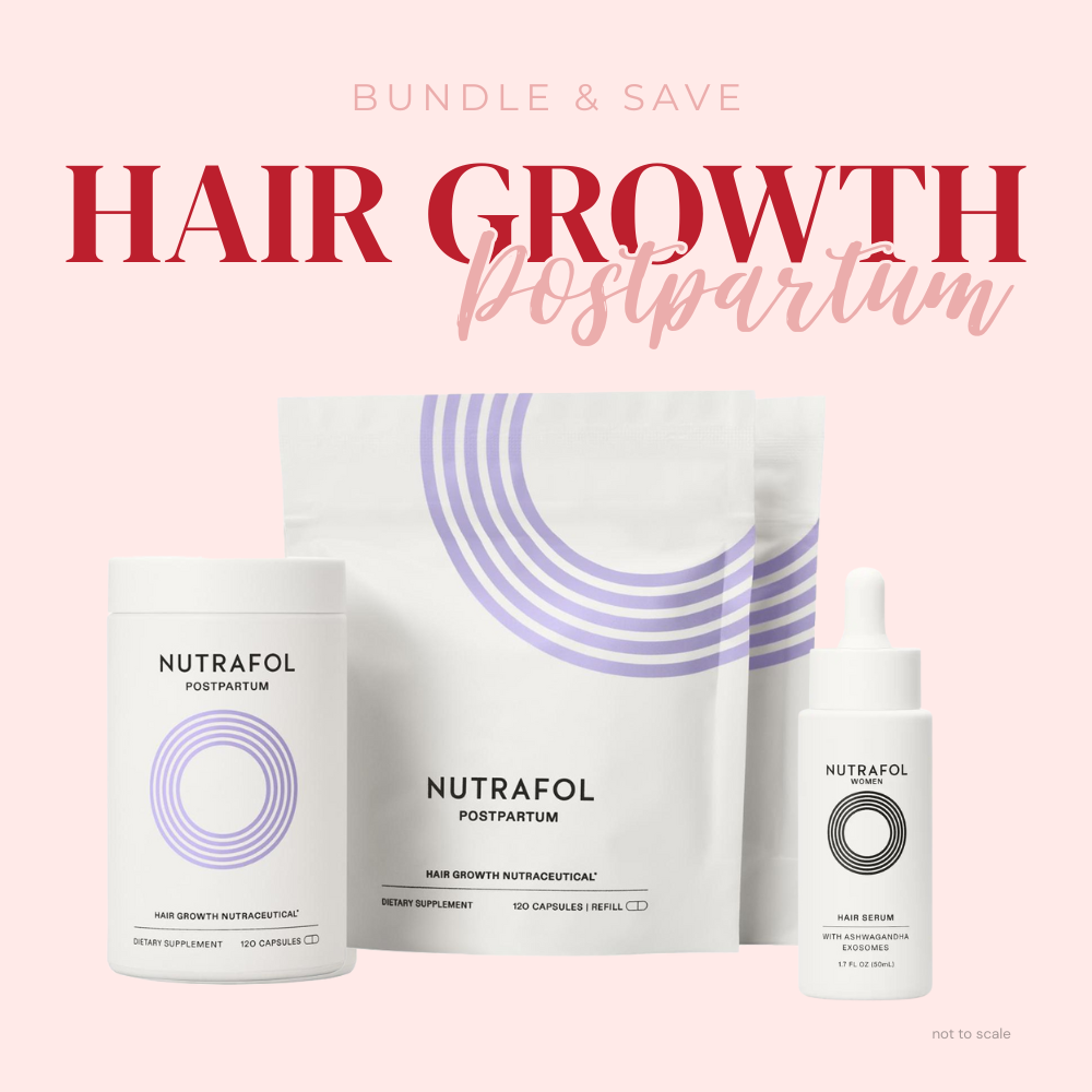 Support healthy hair growth after pregnancy with this inside-and-out approach designed just for the postpartum stage. This bundle pairs Nutrafol’s clinically proven Postpartum formula with their lightweight, nutrient-rich Hair Serum – so you can nourish from root to tip.